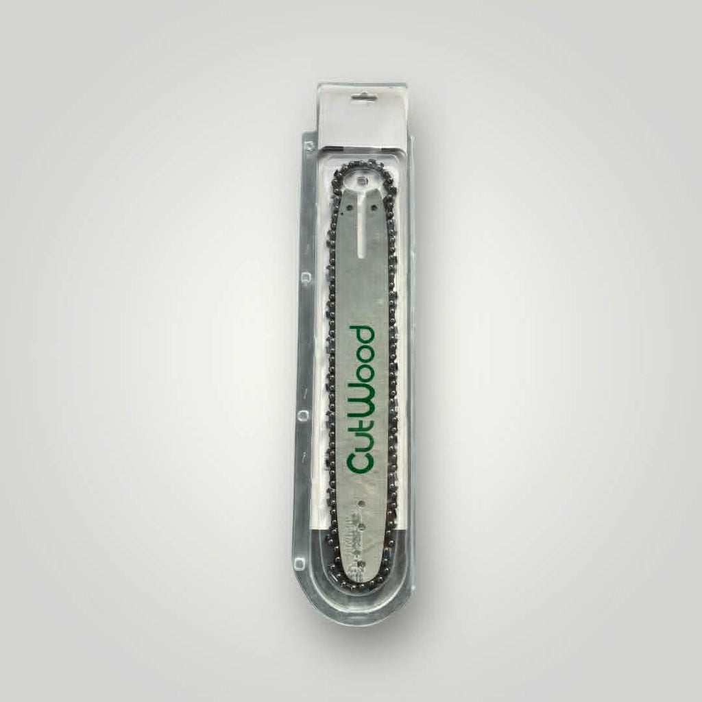 Ensemble guide + chaîne de tronçonneuse CutWood réf. 37 91080, conçu pour un montage en 35 cm (14"). Ce kit comprend le guide et la chaîne, compatible avec une chaîne au pas 3/8 LP (Picco) et à la jauge 1.3 mm (.050").