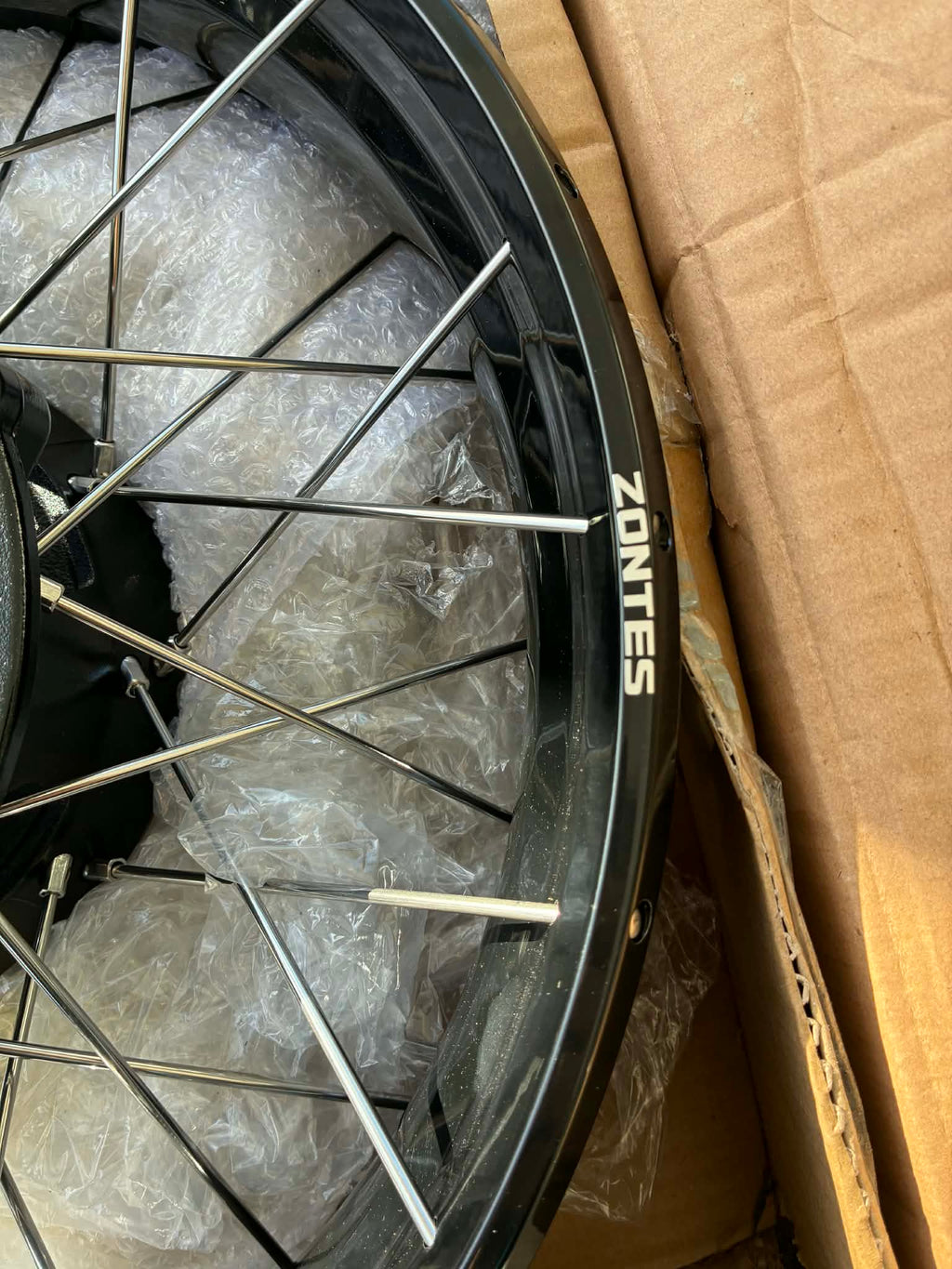 Roue arrière complète pour moto ZONTES, neuve et prête à monter.