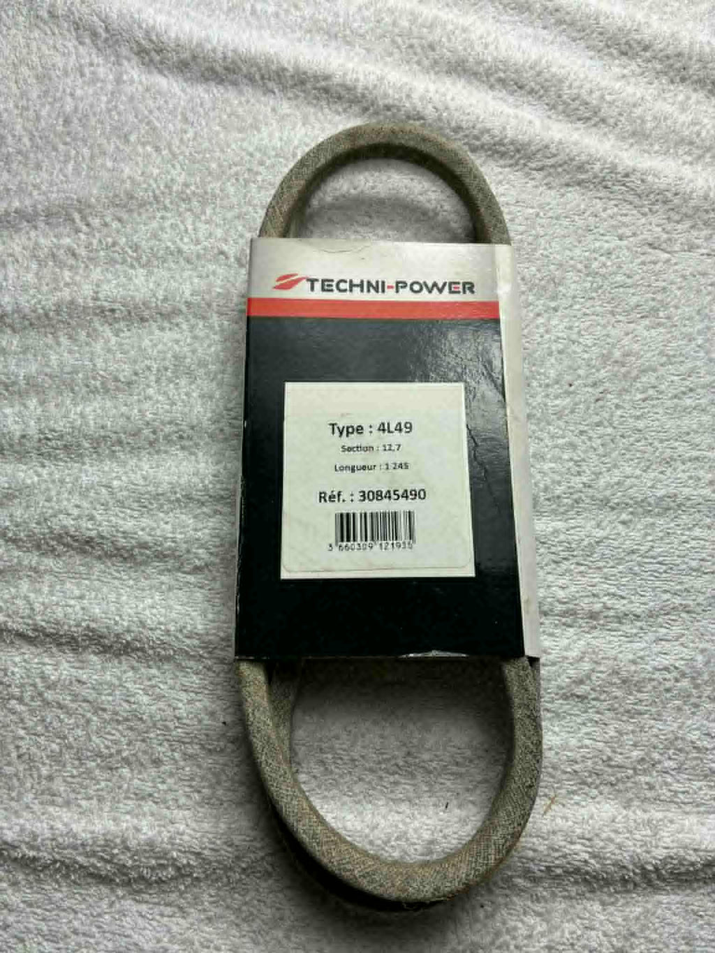 Courroie trapézoïdale type 4L49, idéale pour tondeuses, motoculteurs et autres équipements de motoculture.